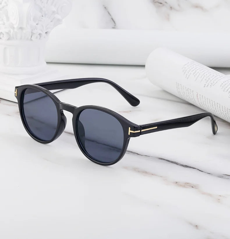 Timeless elegance, every day during summer. Sleek round sunglasses designed with golden accents, shaping the temples.