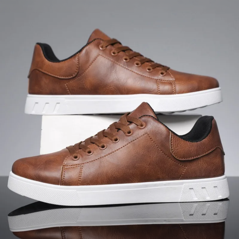 Featuring a sleek faux leather design and a durable rubber outsole, these classic sneakers combine the elegance of British loafers with the comfort of casual flats. The rich brown color of the leather upper is complemented by matching brown laces and a clean white platform sole, creating a sophisticated yet relaxed look. The all-match platform style ensures versatility, making them ideal for both business and casual wear.
