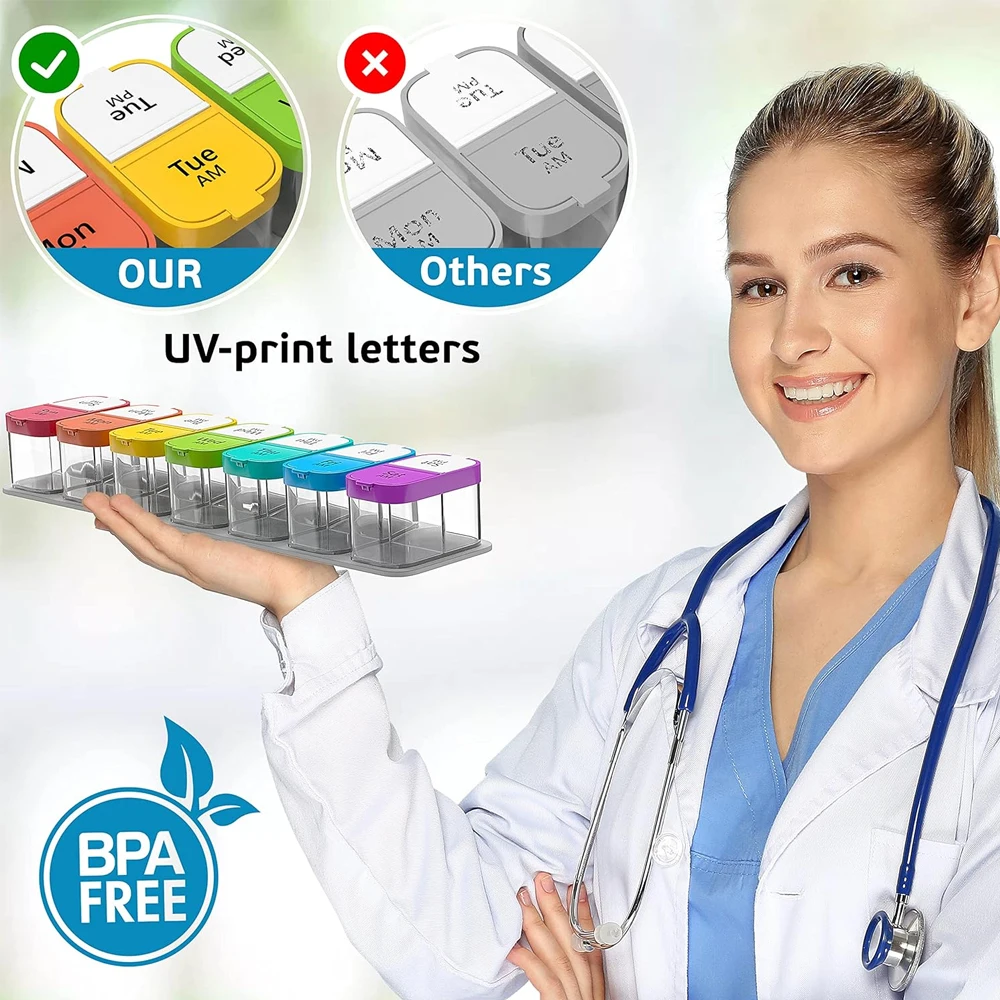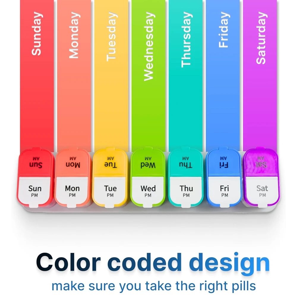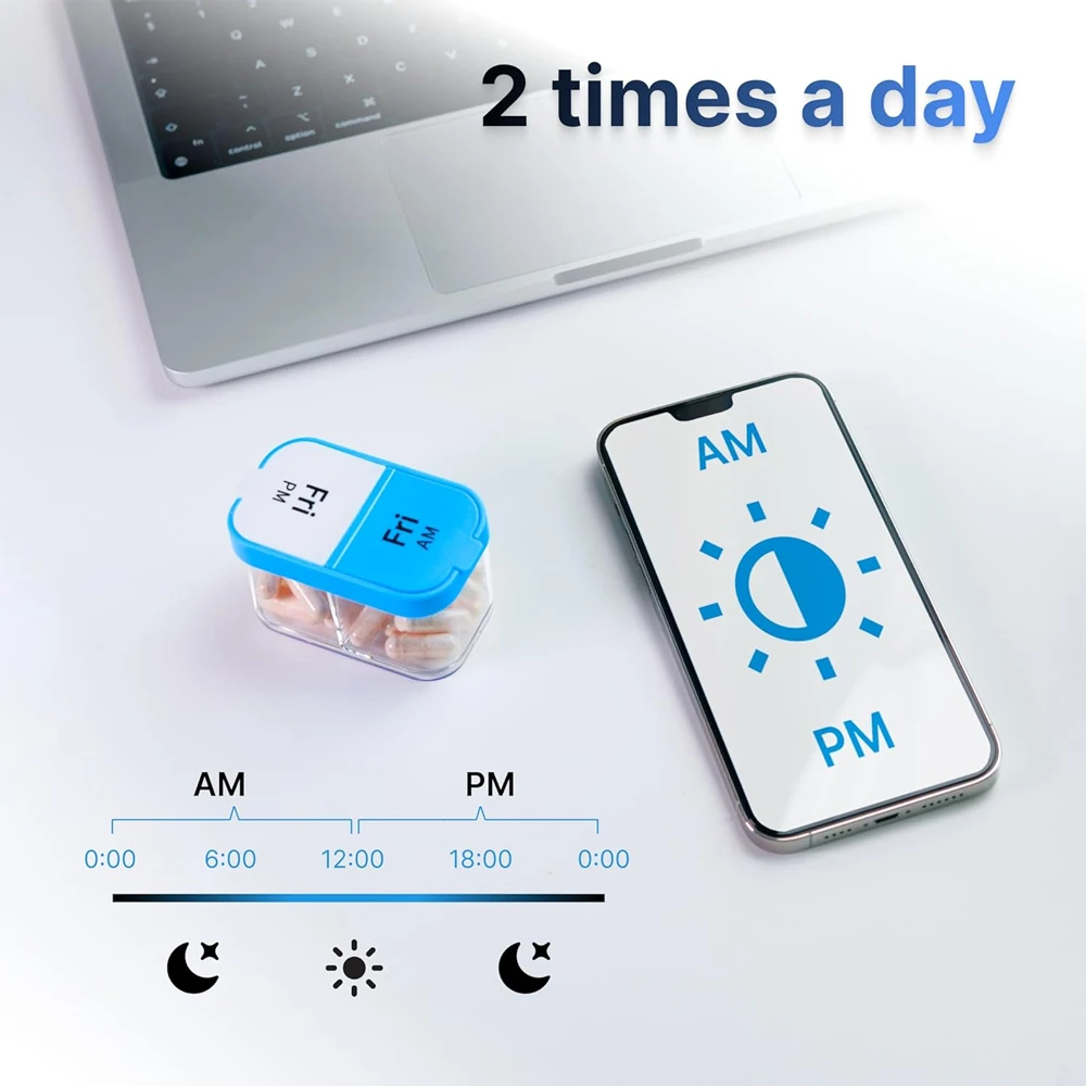 Stay on top of your supplements/meds in style with our Weekly AM-PM Case 2.0! It's extra roomy with color coded week days and detachable AM/PM compartments.
